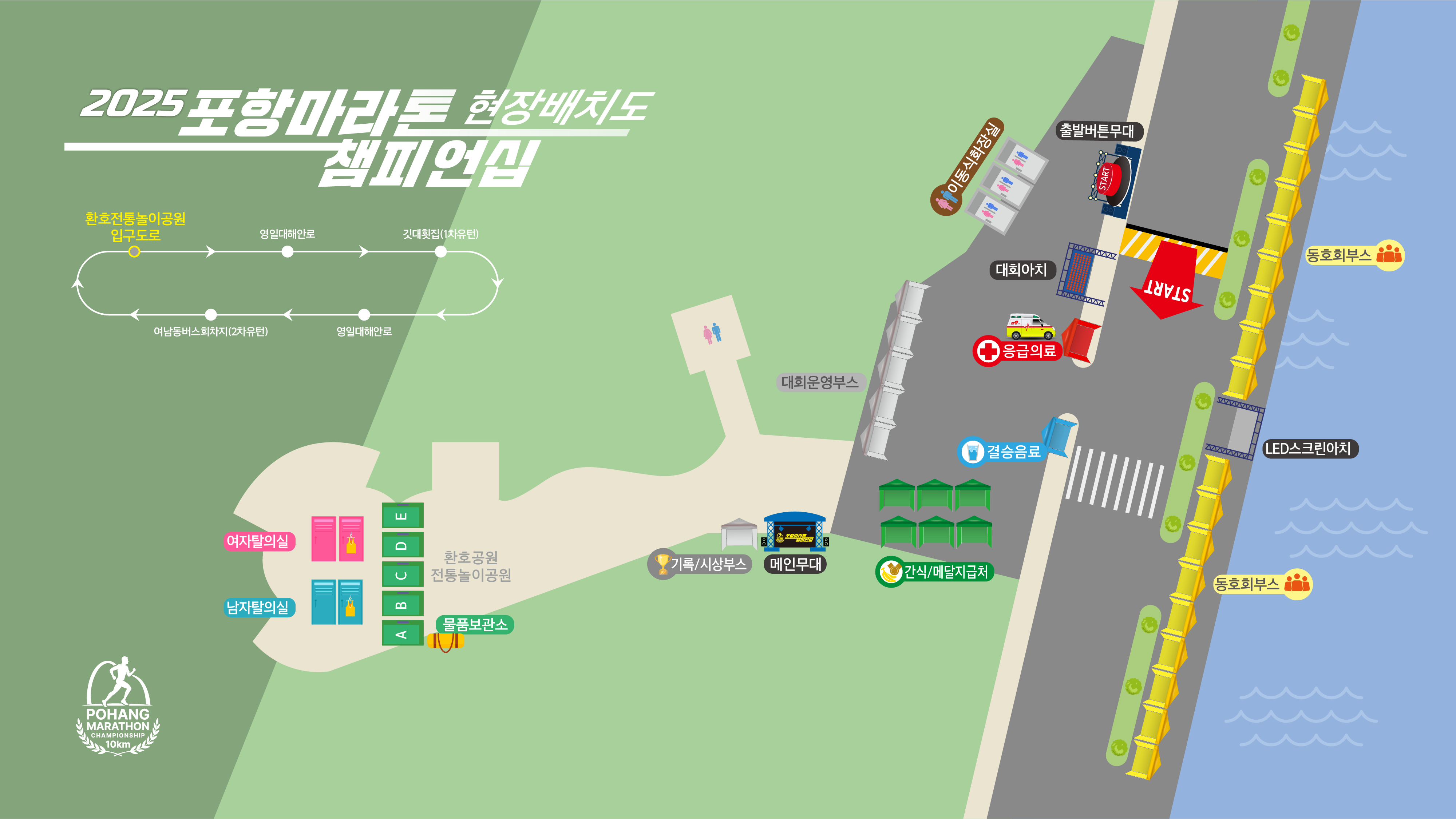 참가자 여러분의 편의를 위해 대회 현장 배치도를 안내드립니다. 주요 시설물 위치를 확인하실 수 있으니 대회 당일 혼잡을 피하고 원활한 참여를 위해 꼭 확인해주시기 바랍니다. 첨부된 배치도를 참고하시어 즐겁고 안전한 대회가 되시길 바랍니다. |