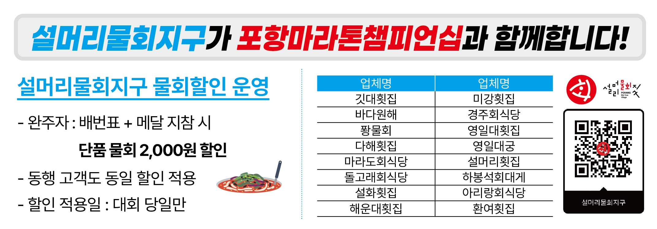 | 제 목 | 설머리물회지구가 포항마라톤챔피언십과 함께합니다. | |